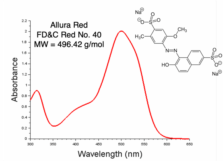 UV-Vis spectroscopy, U.S., FDA, synthetic dye, artificial dye, natural colorant, natural color additives, food dye, Quantification, Fiber optic probe