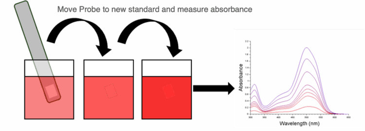 Eight standard Allura Red solutions were prepared by diluting the stock solution with ultrapure water. Each standard was measured using the dip probe and the probe was rinsed with ultrapure water and dried between each measurement. After measurement of the standards, the dilute sports drink was measured with the dip probe.